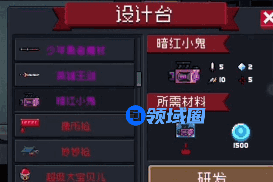 暗红小鬼这个武器可以通过设计台来制作获取。