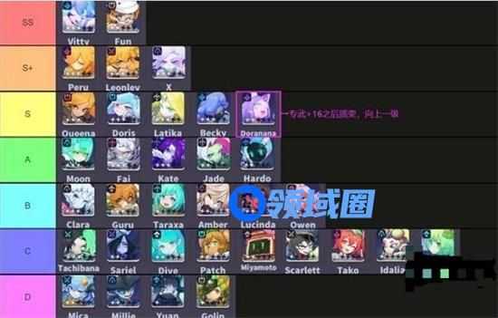奈奈专16前和专16后基本上属于两个角色。推荐大家开服优先把她的专武升到+16,才能解锁她的完全体——也就是开局满充,可以直接放大招。奈奈的核心就是她的大招召唤的噜噜——一只大猫。这个大猫可以继承奈奈的全部属性,战斗力非常夸张,并且能造成群体击飞(专16后出场时)以及单体击飞(被动),还能瞬移到对面后排(被动)。召唤出来之后基本上等于场上多了个又肉又能抗的重装战士。利用好卡位等摆放角色技巧,可以把大猫用来当前排扛伤,也可以用来当刺客单切对面的c位。而且奈奈本身属于暗系角色,很方便补羁绊。
