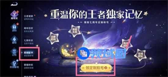 大家进入到活动页面后,大家找到【星晨证书】的活动,点击【领取定制称号】,如图所示。