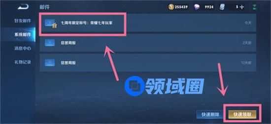 最后大家只需要退出当前页面,点击【邮箱】,领取七周年限定称号就可以了。