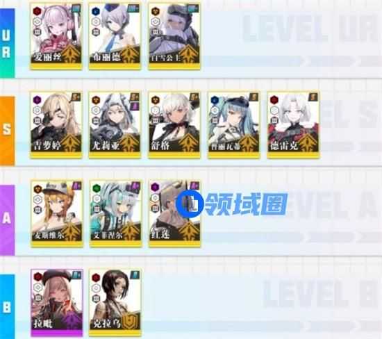 A级:贝洛塔、迪塞尔、尤尼、艾瑟儿、阿莉亚、银华、艾可希雅
