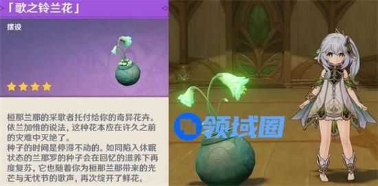 3、兰加惟的礼物需要先完成森林树的前置任务,与兰加惟对话并选择“无忧节的歌...”完成对话剧情之后可以获得「歌之铃兰花」,这是一个室内的摆件,放置效果如下图所示,非常好看。