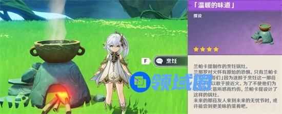 2、在上图位置找到兰帕卡提对话,选择选项中的“特别烹饪修行?”并完成相关而的剧情对话,就可以获得一个摆设“温暖的味道”;