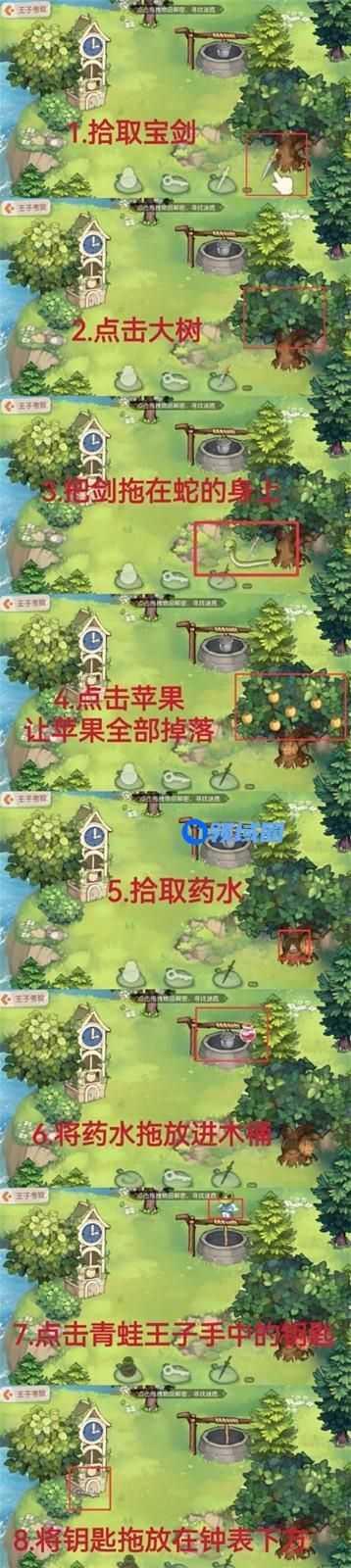 7、水桶下去后,会出现拿钥匙的青蛙,点击青蛙王子手中的钥匙。