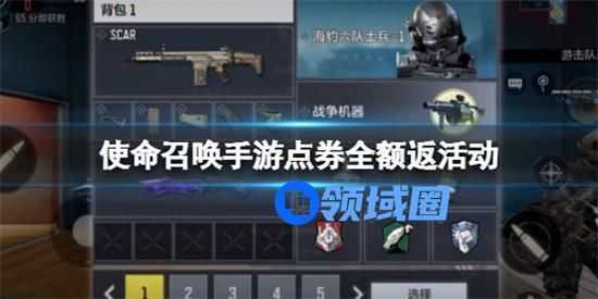 以上就是关于使命召唤手游点券全额返活动玩法的全部内容了,小伙伴们想要了解更多资讯快来领域圈看看吧。