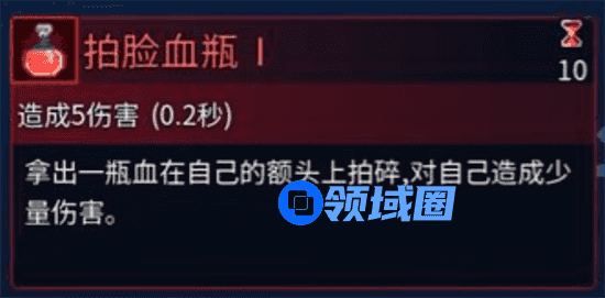 介绍:将一个血瓶砸在自己的额头上,对自己造成少量伤害。