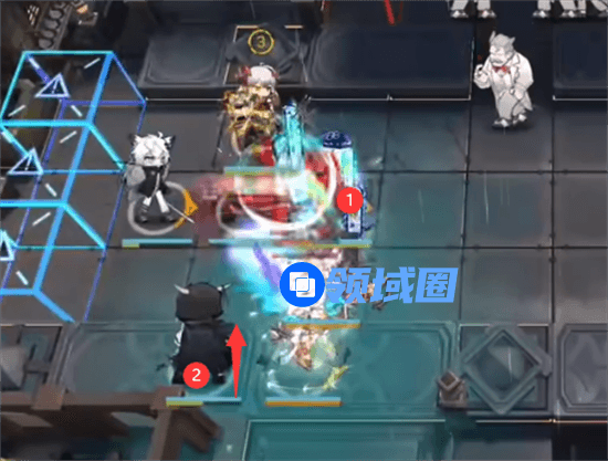 如下图所示位置部署浊心斯卡蒂,随后部署煌(向上)→ 塞雷娅
