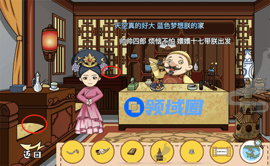 果郡王出现,点击荷花标识,给荷花浇肥,再把乌云扔掉,得到荷花图。