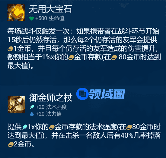大天使与科技刀必备。大天使叠加法强,18秒后索尔称王,科技刀可增加前排续航能力。