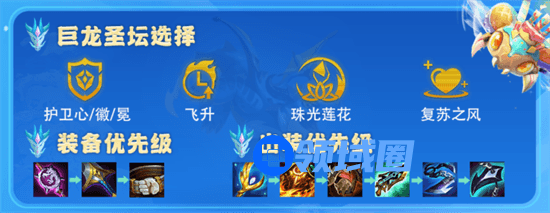 符文方面护卫心/徽/冕优先级最高,可开6护卫极大增加阵容续航。
