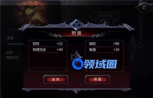 附魔是给装备增加两条随机属性,如果你对装备属性不满意可以再次进行附魔。二次附魔后提示你是否保留新属性,如果新属性不是很好可以选择放弃,本次附魔等级经验一样会增加。