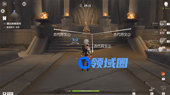 4、进入挑战后,可以前往不同的方向激活古代符文,一共有3个。