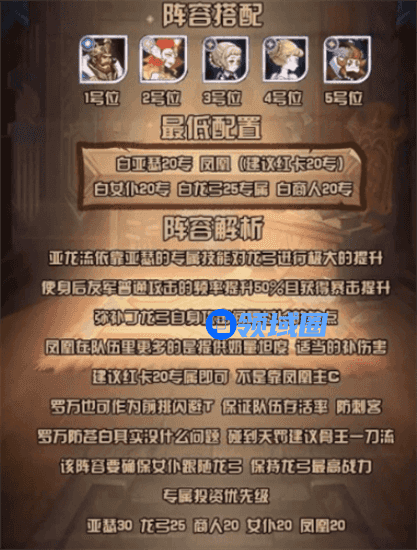 阵容:亚瑟,龙弓,女仆,商人,凤凰