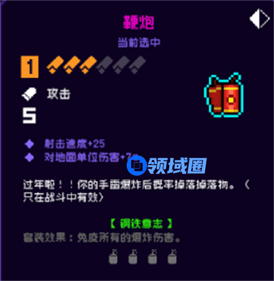 效果:过年啦!你的手雷爆炸后概率掉落掉落物(只在战斗中有效)