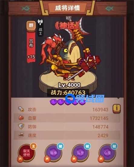 吕布:吕布是群雄神话品质的咸将,场上位置为战士,伤害极其可怕,生命值过低时会提升多个自身属性,可通过首充获得。