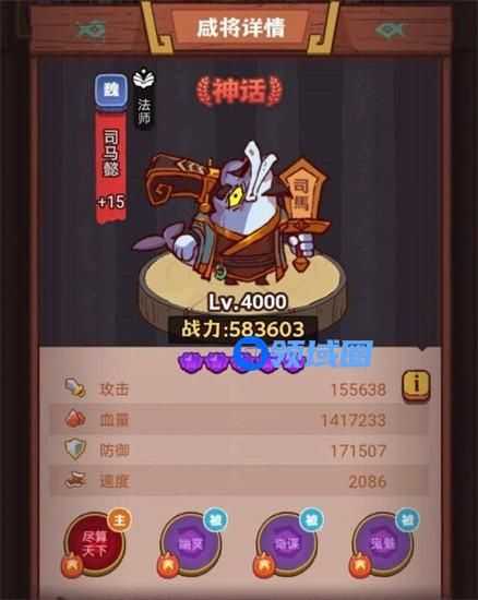 司马懿:司马懿是魏国神话品质的咸将,场上位置是法师,随着回合数的增加和友军技能的释放,司马懿的战力会越来越高。