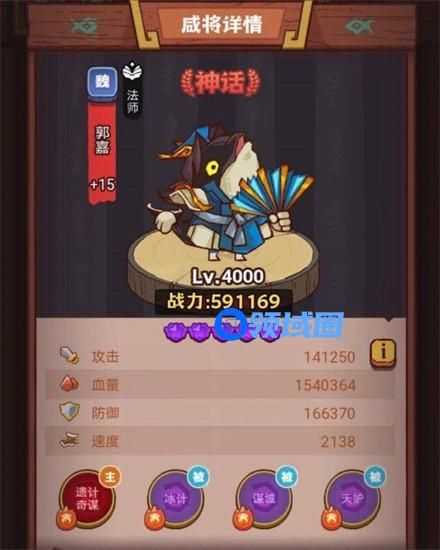 郭嘉:郭嘉是魏国神话品质的咸将,场上位置是法师,发动攻击有一定的概率可以冰冻敌人,在前期可以发挥重要作用。