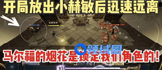 1、过完剧情进入战斗,开局自动放出小赫敏然后迅速远离她(马尔福的韦斯莱烟花是锁定我们角色的),注意走位躲避烟花。