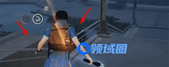 2、我们先来到如图所示桥的位置,从箭头方向向下跳。