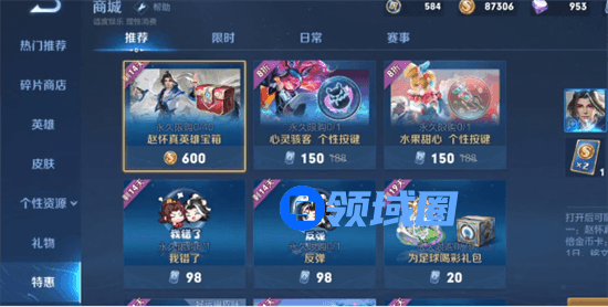 2、点开商城我们点到特惠界面,最上面有一个赵怀真英雄宝箱,我们可以花600金币购买宝箱抽取赵怀真,2400金币必出英雄。
