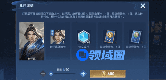 以上就是王者荣耀赵怀真获取方法,想要了解更多资讯尽在领域圈。