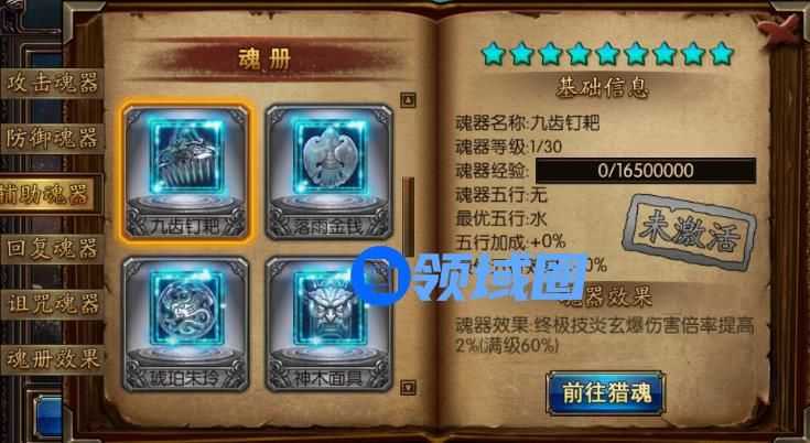 适当地装备相关的魂器可以提高技能对目标的伤害加成,在此推荐【九齿钉耙】神器效果,可以对炎玄爆的伤害进行加倍