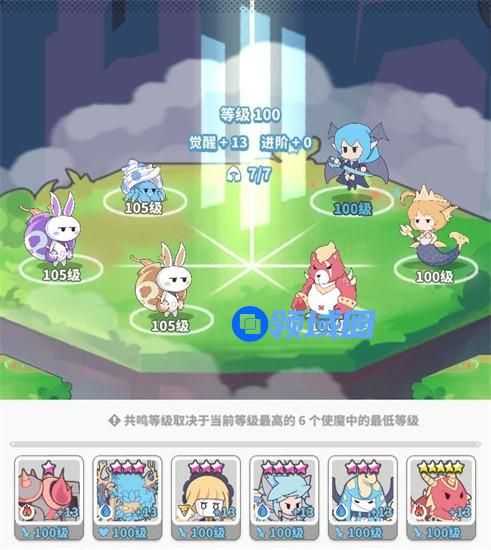 功能解析:游戏内只需要培养6个使魔,其余使魔放进共鸣槽位就可以共享等级阶级的提升,真的相当方便呢!这里建议三种属性(火、风、水)按各自的数量平均培养,为后续在通天巨塔内开放的元素塔玩法作准备。