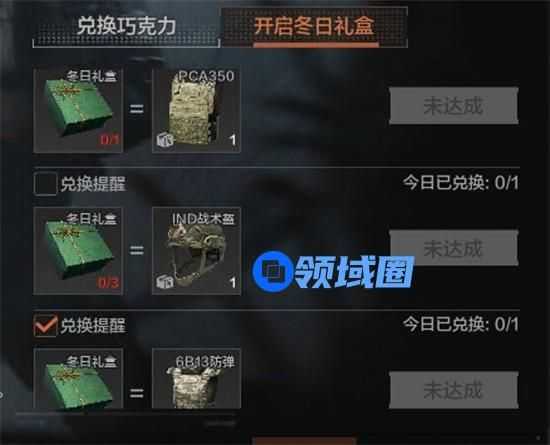 积攒到一定数量的冬日限定礼盒可以兑换PCA350防弹衣、IND战术头盔、6B13防弹衣这类高级物资,给年末在赛季冲刺的先锋们更多保障。