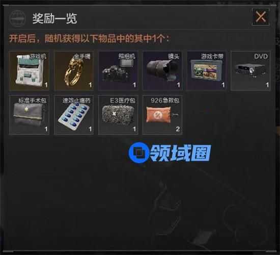 黑橙巧克力可以直接进行开启,打开后有几率获得E3医疗包,926急救包等,运气好的话也许你还会开到金手镯和游戏机。所以不要错过巧克力,带出来就有机会开到金色物资!