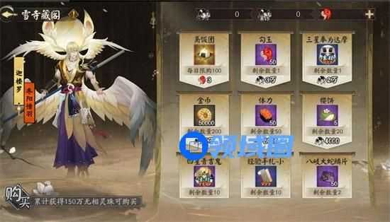 ※雪寺藏阁:大人可使用在「雪寺匿踪」中获取的「无相灵珠」,在此处兑换「迦楼罗皮肤·冬阳惜羽」、动态头像框「藏镜之匣·往昔」、SSR/SP式神兑换券、限定插画、御行达摩等丰富奖励。