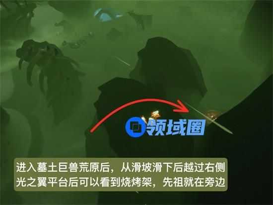 1、首先我们去墓土四龙图,在螃蟹烧烤架那里即可找到黑金斗篷先祖。
