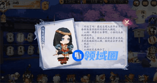 以上就是阴阳师八百比丘尼玩偶位置,想要了解更多游戏资讯尽在领域圈。