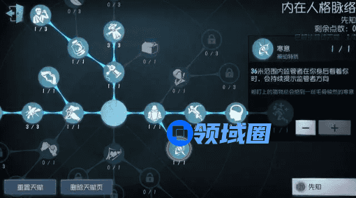 愈合+寒意:这两个不属于必点的,愈合的话如果队友有带加速治愈的天赋点也能很好弥补,就算没带加速治愈,治愈的速度也在可接受范围;而寒意的话就比较看个人,因为是36米范围内提前看清监管的追击方向,但是视力过关的小伙伴们这点就没有必要。