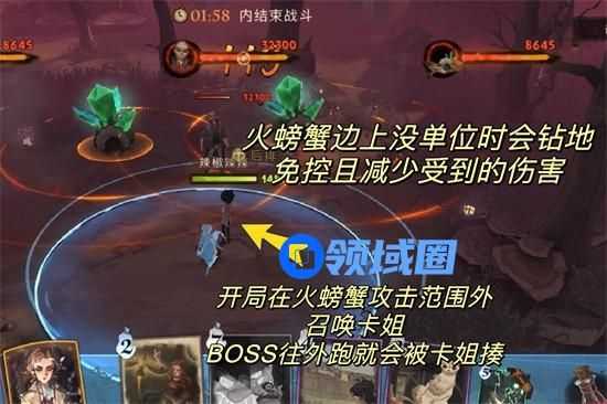 开局在火螃蟹攻击范围外召唤卡姐,BOSS往外跑就会被卡姐揍。