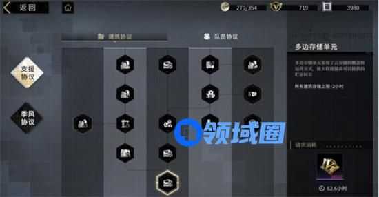 2、协议为科技树形式,通过消耗影响力,提升建筑、队员在地产界面的表现,提升游戏的收益。