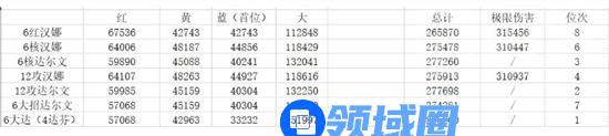 2、6红汉娜极限伤害(九红加大招)最高,但仍然是理论值,能不能吃满伤害是个问题。