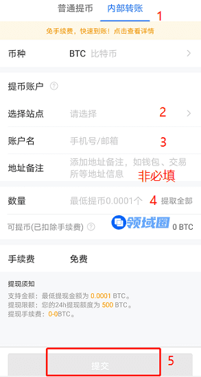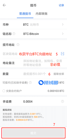 2. 普通提币需要网络矿工手续费:由区块的网络矿工收取,平台不收取提币手续费,以BTC为例,单笔提现手续费:0004-0.01BTC,手续费越高,到账速度越快。