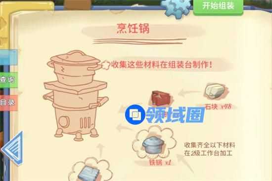3、在研究好了之后会通过邮件通知玩家,得到通知后就可以在组装台上看到烹饪锅已经解锁,收集齐材料就可以制作了。