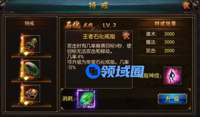 如果能提升特戒系统内的石化戒指,那就更能起到事半功倍的效果,可以把对手更久的留在自己的可攻击范围内。