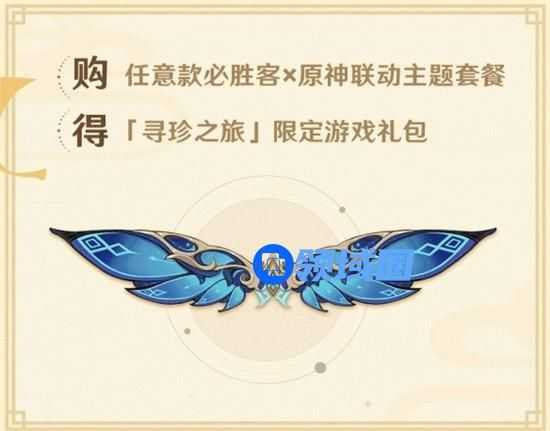 获取方式:活动期间内购任意款必胜客x原神联动主题套餐得「寻珍之旅」限定游戏礼包,礼包内含联动限定风之翼【星筵之翼】
