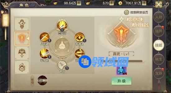 1、在剑玲珑的技能系统中,玩家可以对职业技能进行升级和选择效果的操作。