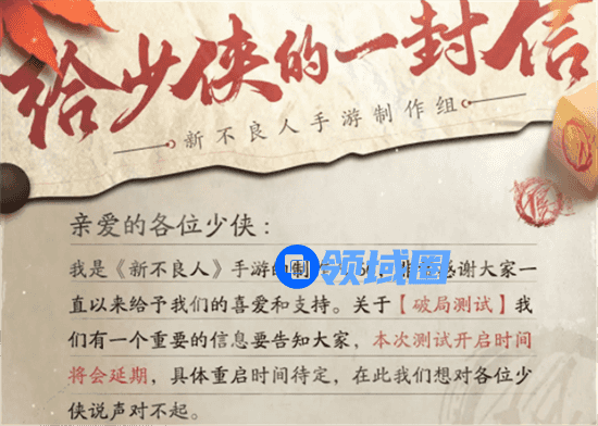 以上就是新不良人游戏测试延期全部内容,小伙伴们想要了解更多内容请持续关注领域圈。