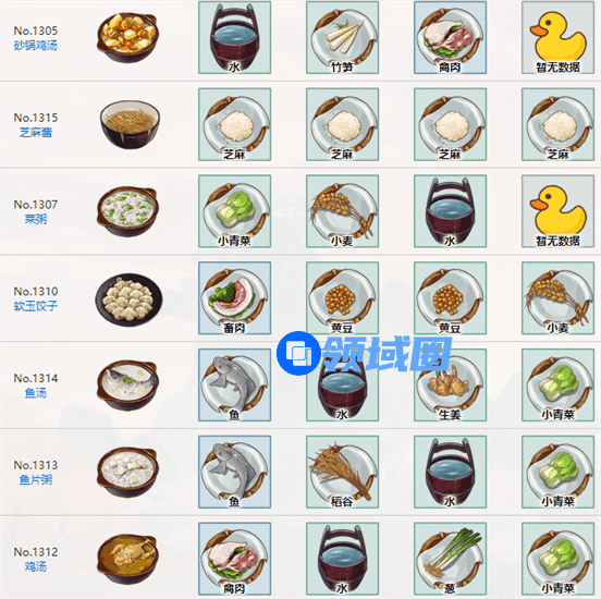 如图所示,有些只有2、3个材料的食物也是可以制作的,只不过品质更低