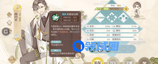 大招:茶香沁心脾,为朋友斟上一杯秘制的健体茶汤,可净化己方全体1个负面状态,并攻击提升2回合。与青团二人可以组建一个净化小分队,一人负责攻击提升而另一人负责暴击提升,并且二人都可以降低对手的攻击。