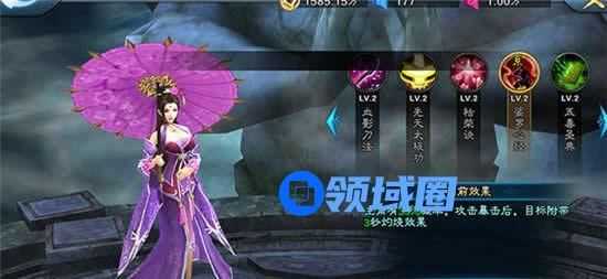2、紫鸳的心法,为主角的暴击提供攻速,这里有必要说下,有人可能会问,我靠技能输出要攻速干嘛?请大家回忆一下自己在打副本的时候有没有遇到过释放技能的时候被击退,这样技能就放不出来了,攻击速度同时也是释放速度,释放速度快,被打断的几率也就低了吧,并且紫鸳庙会两日送,且有多种方法获得碎片,很 容易升到五级心法,前期必选 。