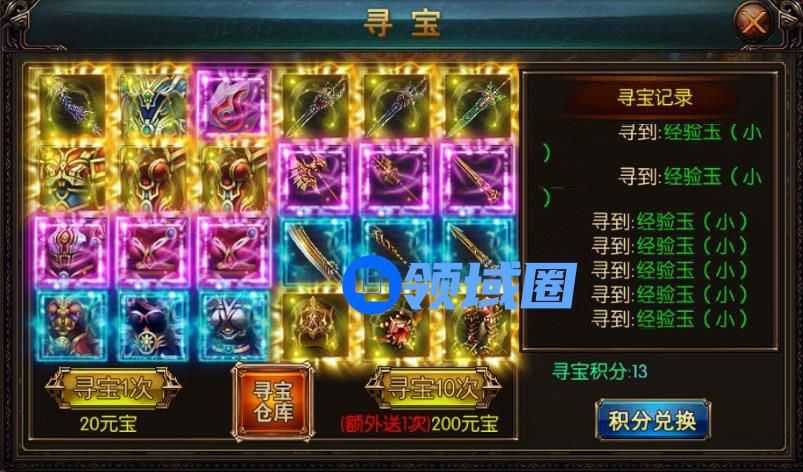 (2)屠龙战神装备可以通过寻宝获得