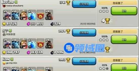 以上是领域圈小编为您整理提供的游戏攻略,希望这个攻略对您有所帮助,请时常关注领域圈《部落冲突》专区,领域圈将为您提供最新的攻略。