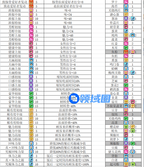 以上就是开罗拉面店配料对应技能和效果,希望能给大家带来帮助。了解更多内容请持续关注领域圈。