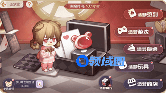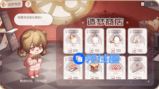 造梦商店限时开放,货架上新了精美的主题装扮和主题家具。参与活动获取「入梦卡」,可以在造梦商店兑换「童趣红白头冠」、「弹簧小花发箍」、「红心小挎包」、「胡萝 卜发箍」和家具「小小梦境」系列等礼物。