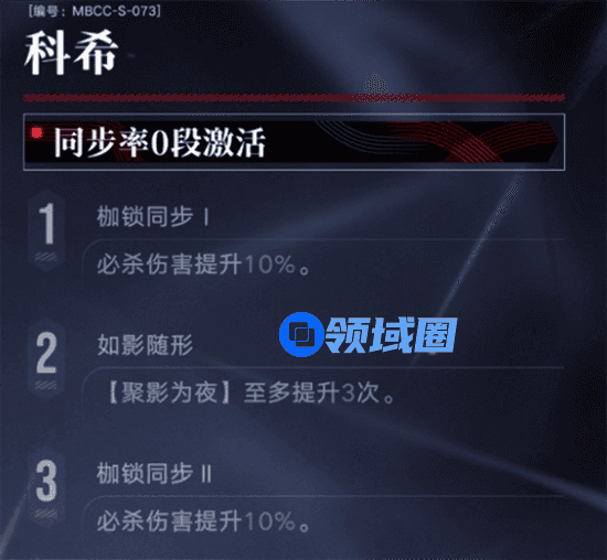 纵观科希的技能,其最大的特点可以用8个字来形容:蛰伏影匿,一击破敌!利用超长的大招输出范围与破核效果,科希在部分特定场景下的输出与破核效率还是非常不错的,但如果我们把她看做一个常规狂级角色来对待的话,其持续输出能力的不足也是较大的隐患,同时技能机制也决定了科希的泛用性在对比目前的核心角色时也并不具备太高的竞争性。